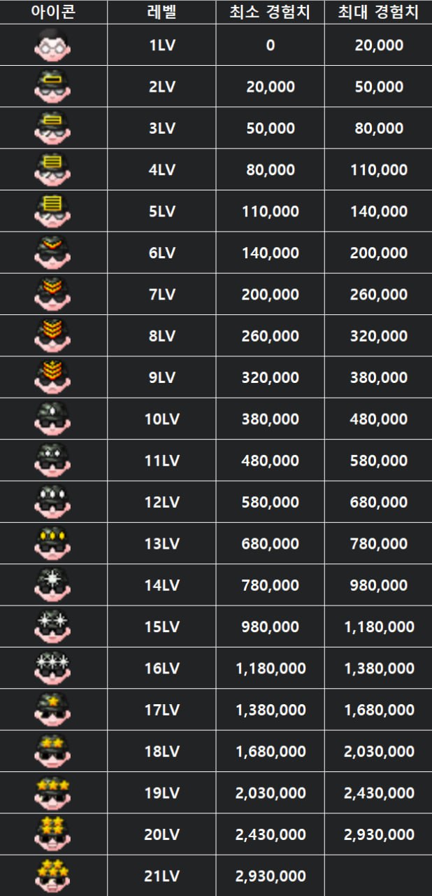 레벨별 혜택 및 규정