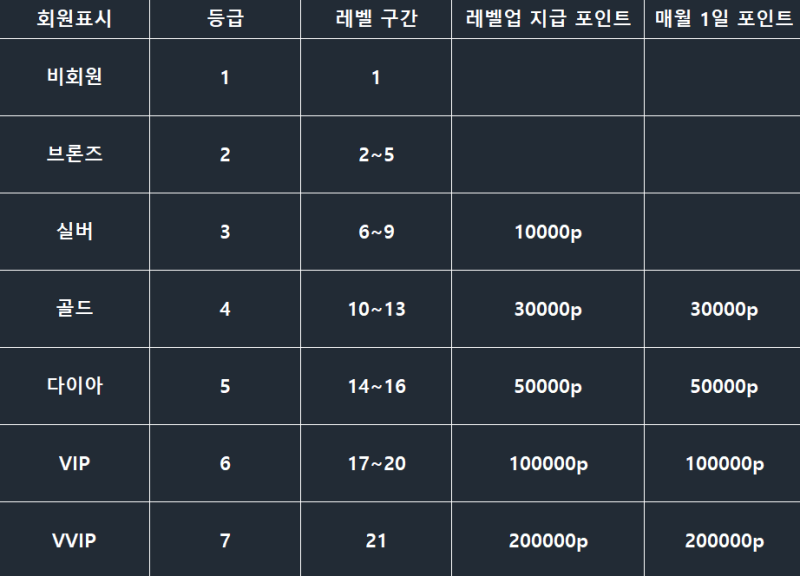 레벨업 지급 포인트 / 매월 1일 포인트
